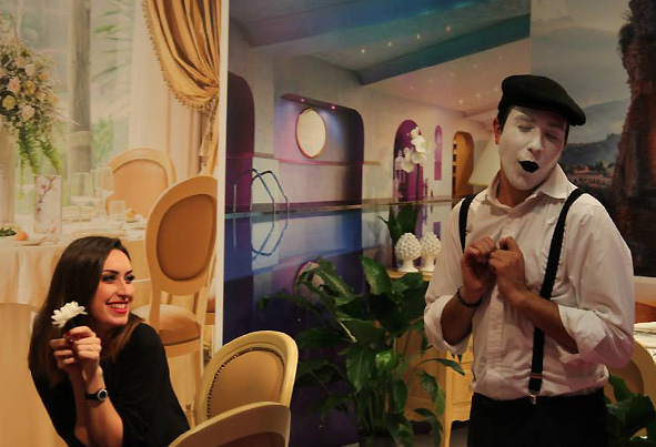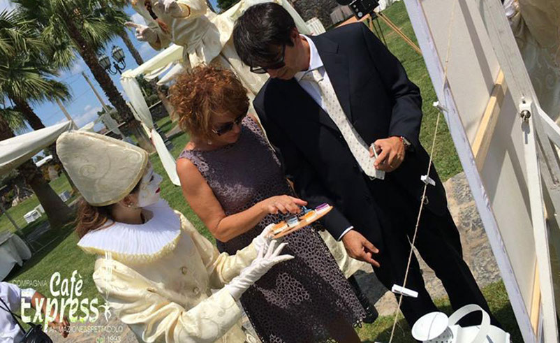 Gli artisti, animeranno e sorprenderanno gli invitati, in maniera originale e creativa, nei momenti che tradizionalmente risultano stancanti (attesa degli sposi, lunghi banchetti, intervalli fra una portata e l'altra), smorzando l'imbarazzo tra invitati che non si conoscono o ancora divertendo e tenendo a bada i più piccoli. La Compagnia Cafè Express con le sue attrazioni contraddistinguerà e valorizzerà il Vostro evento, rendendolo fuori dal comune.